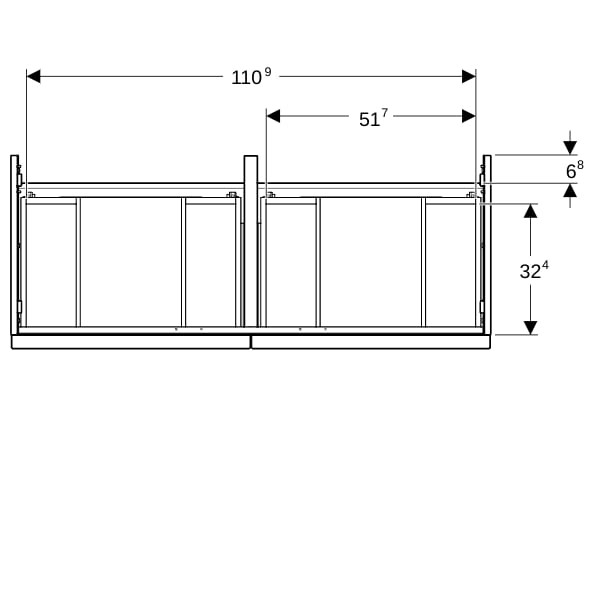 Geberit Doppelwaschtisch-Unterschrank iCon 118,4x61,5x47,6cm, 4 Schubladen, sand hochglänzend/Griff sand matt