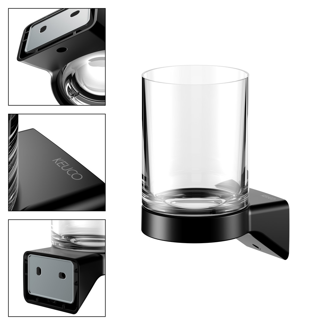 KEUCO Glashalter Aveno mit Echtkristall-Glas und Halter, schwarz matt