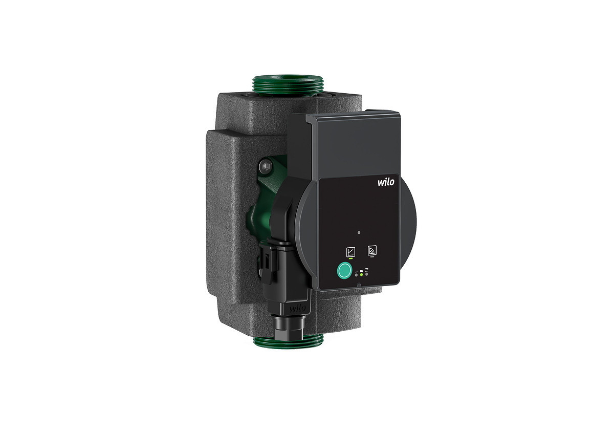 Nassläufer-Umwälzpumpe mit Verschraubungsanschluss, blockierstromfestem EC-Motor und integrierter elektronischer Leistungsregelung, mit Wärmedämmschale, bestehend aus Pumpe, Wärmedämmung, Wilo-Connector, Dichtungen, Einbau- und Betriebsanleitung, Baulänge 180 mm, max. Betriebsdruck 10 bar