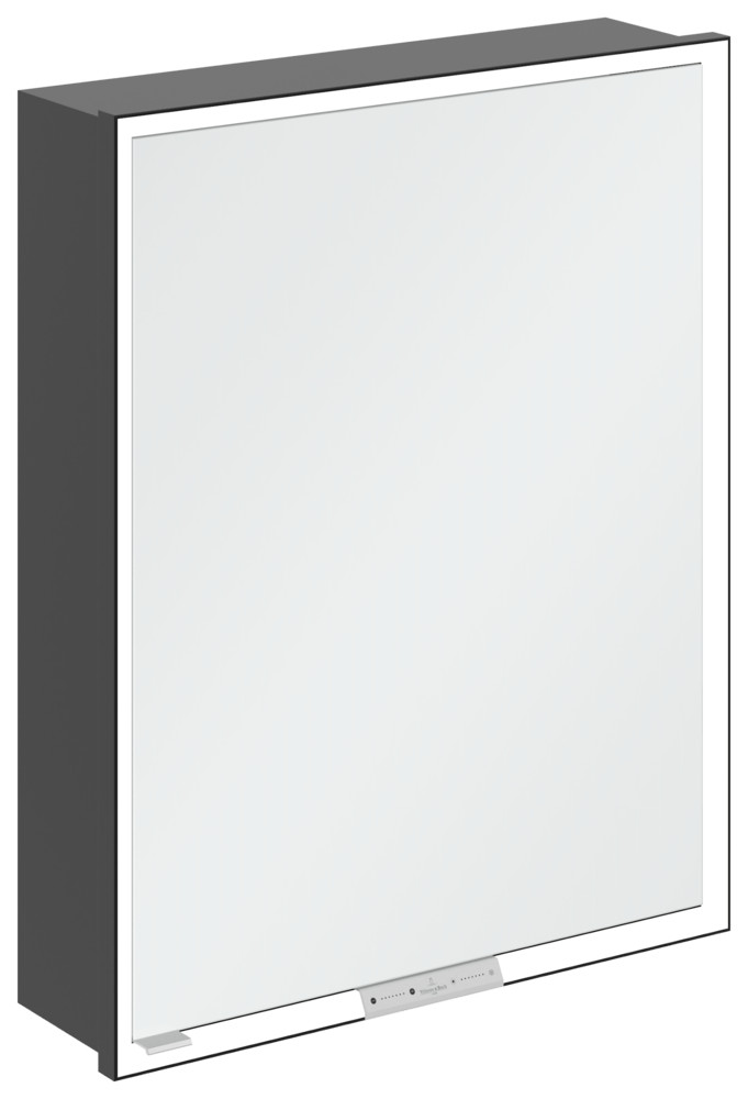V&B Spiegelschrank My View + 60 x 75 x 16,8 cm, Scharnier Anschlag rechts, verspiegelt, LED-Beleuchtung, Aluminium schwarz matt eloxiert W937180