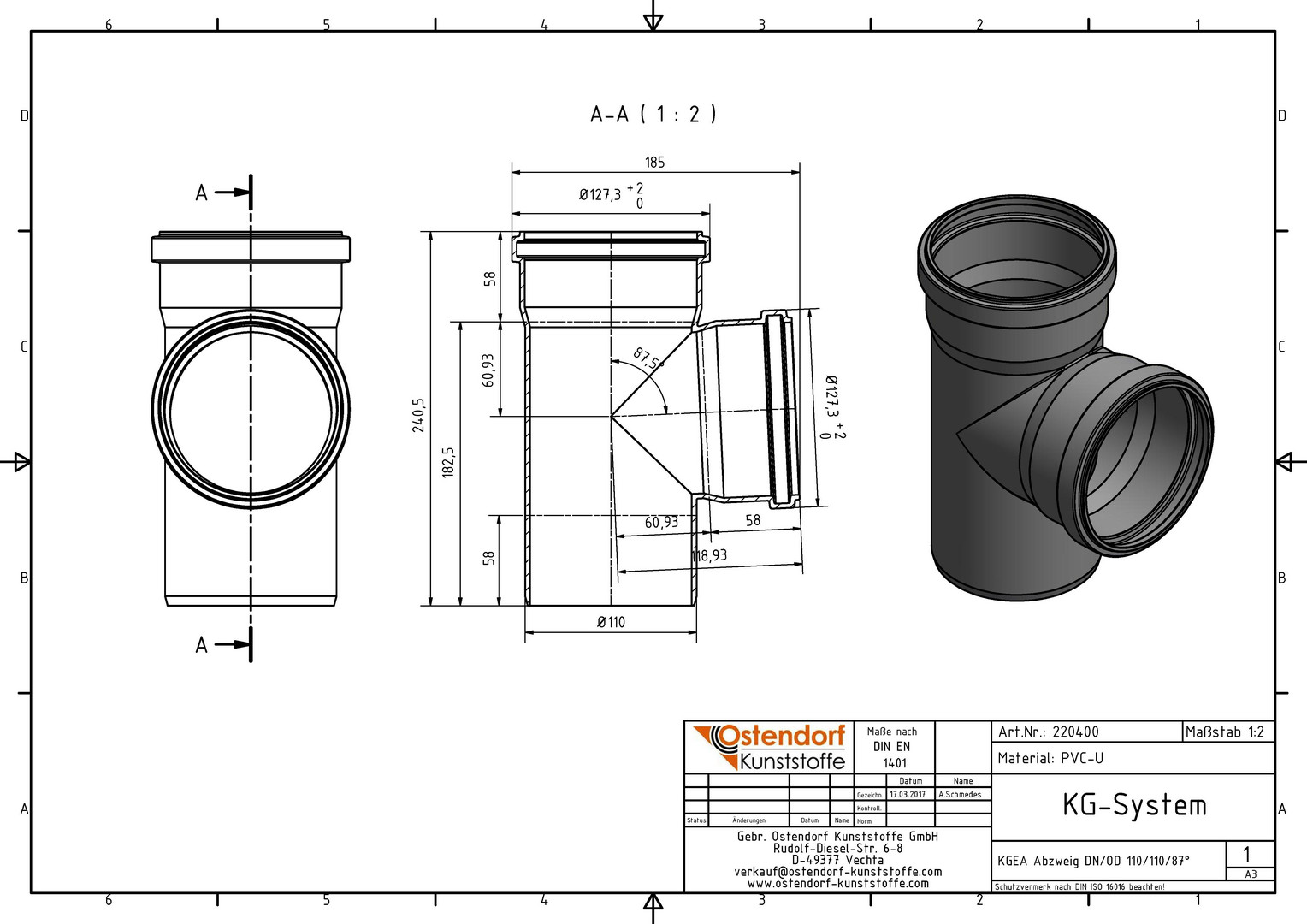 Ostendorf KG Abzweig EA DN/OD 110/110 x 87,5°