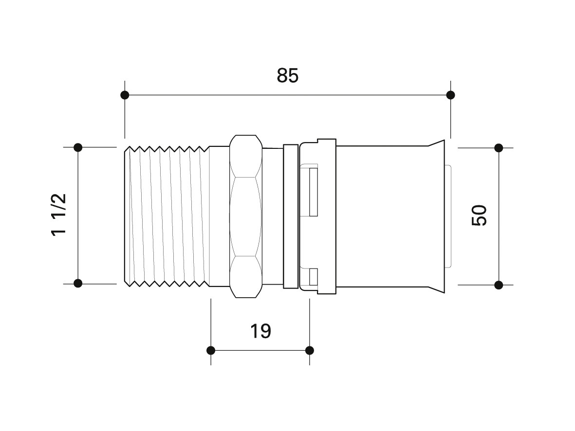 Fränkische Übergang alpex L 40 mm x R 1 1/2, mit AG, entzinkungsbeständiges Messing 189355